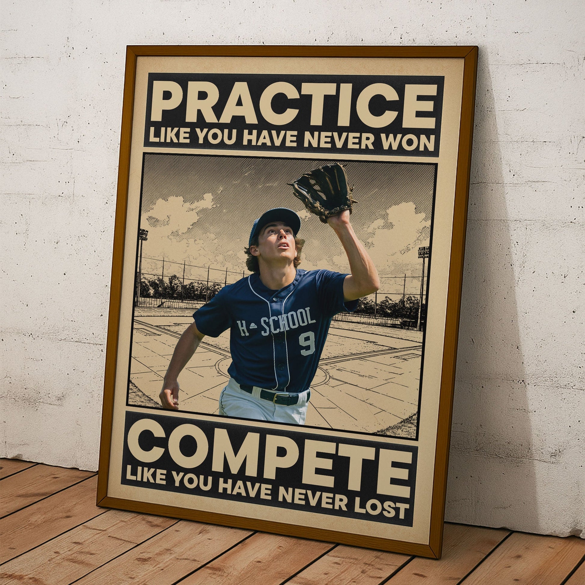 Discover the perfect gift item for sports enthusiasts and baseball lovers - our Practice Like You Have Never Won - Personalized Photo Poster! This unique poster invites admiration with its stunning design and powerful message indirectly urging the recipient to practice hard, as if they haven't won, yet compete fiercely, like they've never experienced defeat. An excellent way to celebrate memories, express sentiments, and emphasize the importance of perseverance and competition. A brilliant presentation of personal experiences, sure to bring joy to your cherished ones on special occasions.